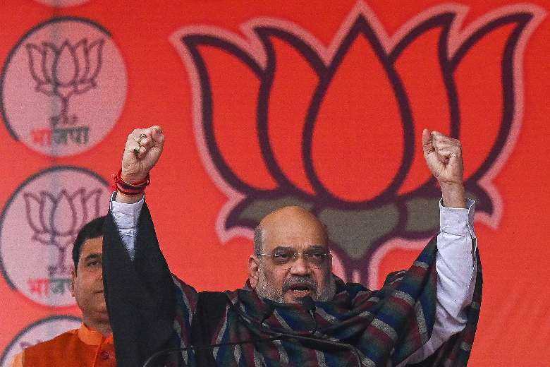 Home Minister Amit Shah gestures during an election rally in Uttar Pradesh on Feb. 3. (Photo: AFP)