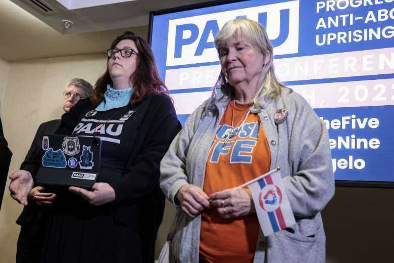 Anti-abortion activists Lauren Handy and Joan Andrews Bell at an April 2 news conference on the five fetuses found inside the home where Handy and other anti-abortion activists were living on Capitol Hill, Washington, DC. (Photo: AFP)