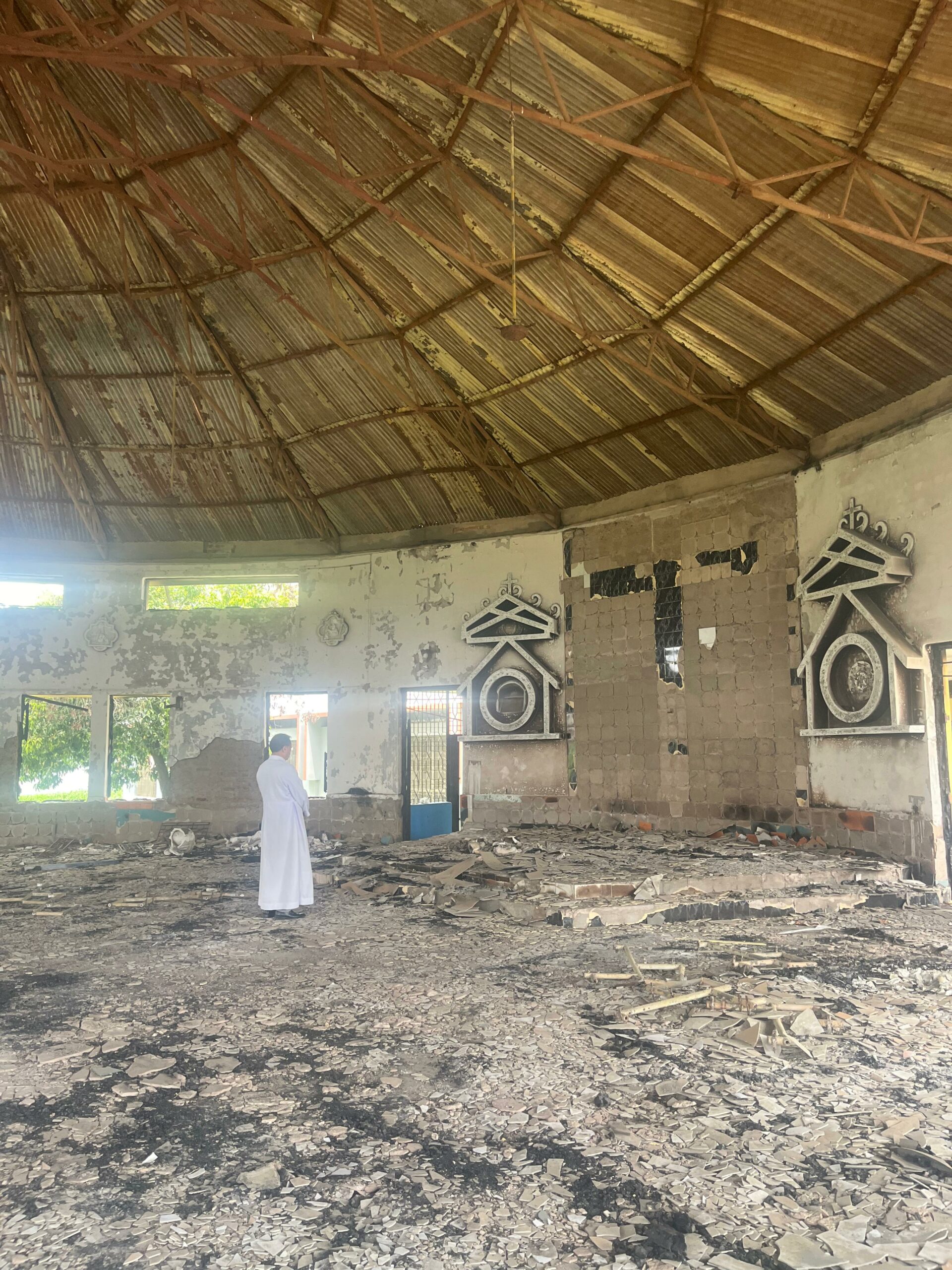 Last month, Neli along with his team visited the vandalised St. Paul’s Church in Sangaiprou, Imphal. The archbishop prayed in an empty church, by an empty cross and an empty tabernacle that was destroyed. Earlier, Neli visited and prayed at St. Joseph Parish in Sugnu, Manipur.