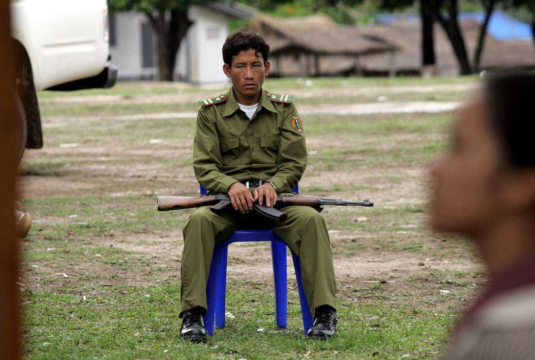An armed Lao policeman is seen in a village near the capital Vientiane in this file image. Christians in Laos face various forms of abuse in rural areas of Buddhist-majority nation. (Photo by Hoang Dinh Nam/AFP)