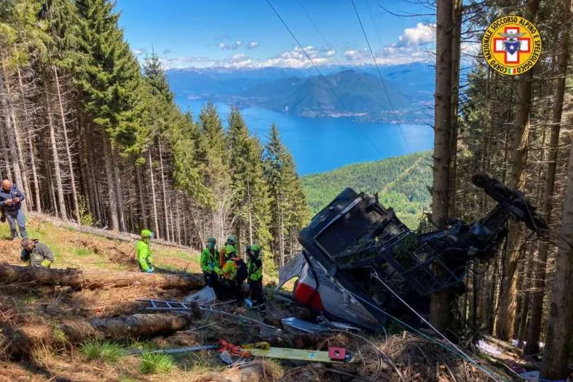 The cable had been carrying visitors from the town of Stresa up the Mottarone mountain on the afternoon of May 23 when it broke, plunging the car around 65 feet before it hit the side of the mountain.
