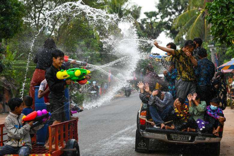 Cambodians spray water during Khmer New Year celebrations in Siem Reap province on April 15. (Photo: AFP)