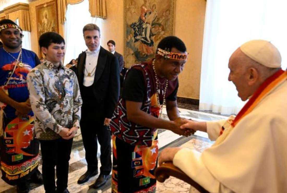 Pope Francis meeting the Community of the Pontifical Urban College for the Propagation of the Faith. (Photo: Vatican Media)