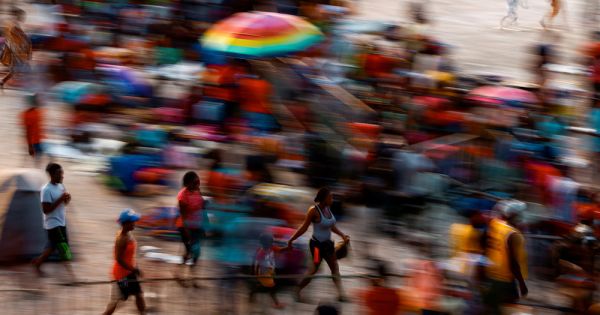 Migrants in Tapachula, Mexico, wait in a stadium Dec. 3, 2021, as they hope to receive help from the Mexican government to obtain humanitarian visas to transit Mexico. (CNS/Reuters/Jose Luis Gonzalez)