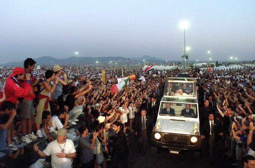 Twenty-five years ago at the University of Rome Tor Vergata, youth gathered from around the globe for an all-night vigil during the 15th World Youth Day. Pilgrims stayed overnight on the open field with sleeping bags, with St. John Paul II presiding over the vigil.