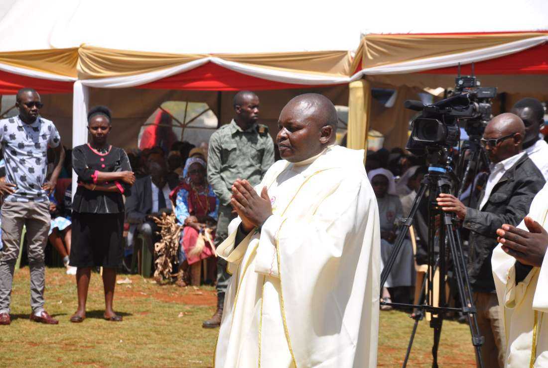 Father Michael Mithamo King’ori prays during his Jan. 14, 2023, ordination Mass at St. John Bosco Kiamuiru Primary School in the Archdiocese of Nyeri, Kenya. (Photo: Twitter)