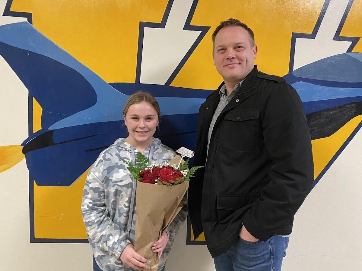 Abby Hill, an eighth grader at Wagar Middle School, got an unexpected floral gift delivered to her at school Friday.