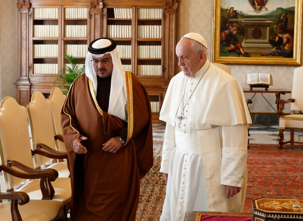The pope will have a chance to underline the role governments, diplomats and members of civil society need to play when he meets with them Nov. 3 at Sakhir Palace. The pope also will meet with King Hamad bin Isa Al Khalifa, who invited the pope and is sponsoring the Forum for Dialogue event.