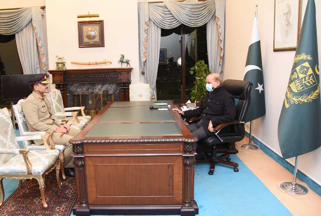 Pakistan’s Prime Minister Shehbaz Sharif (right) meets with the nomination of the next Pakistan’s army Chief General Syed Asim Munir (left) at the Prime Minister House in Islamabad on Nov. 24. (Photo: AFP)