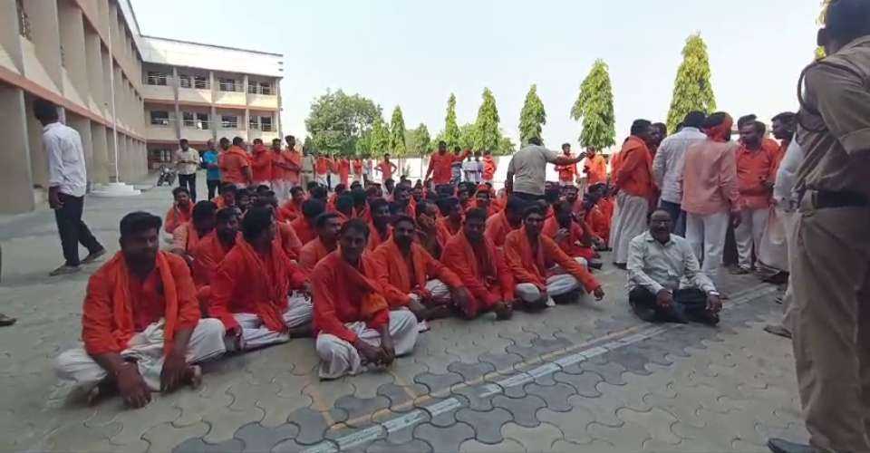 A mob wearing saffron shirts and shawls around their neck forced their way into St. Mother Teresa English Medium School in Kannepally village in Telangana state’s Mancherial district on April 16.