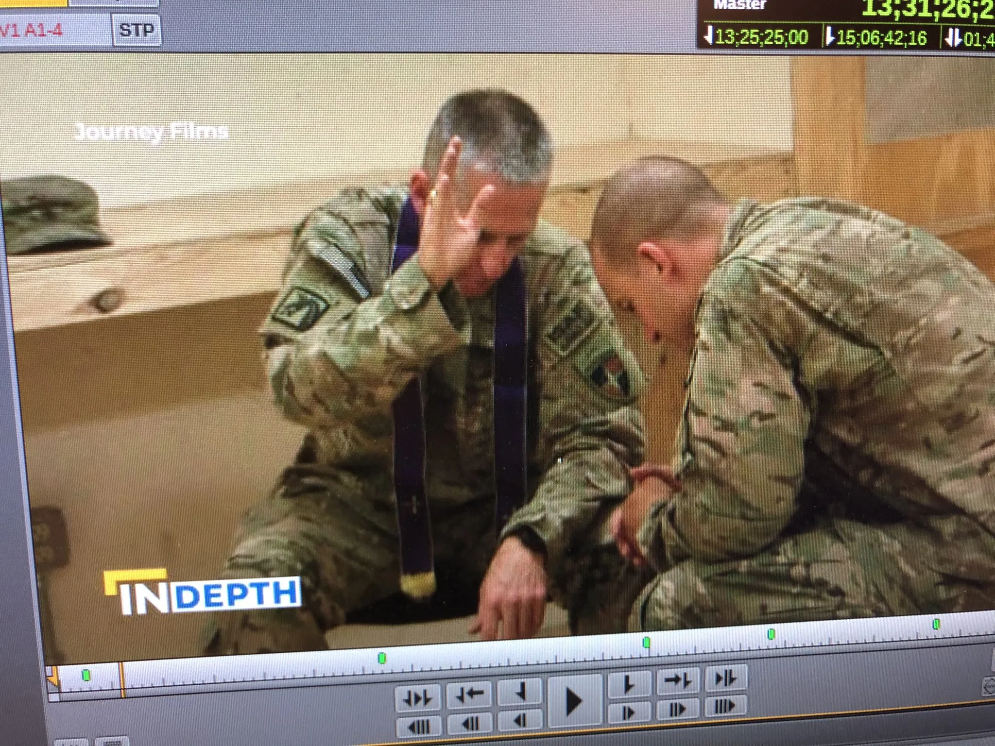 Both Fr. Kirk and Fr. Hinkle don military uniforms that signify their role as officers and priests.