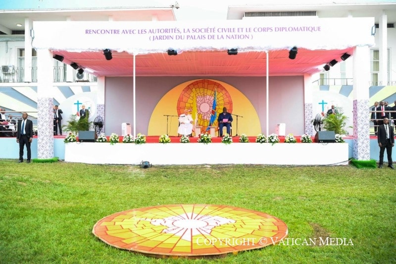 After the introductory speech by the President of the Republic, H.E. Mr. Félix Antoine Tshisekedi Tshilombo, the Pope delivers his address.