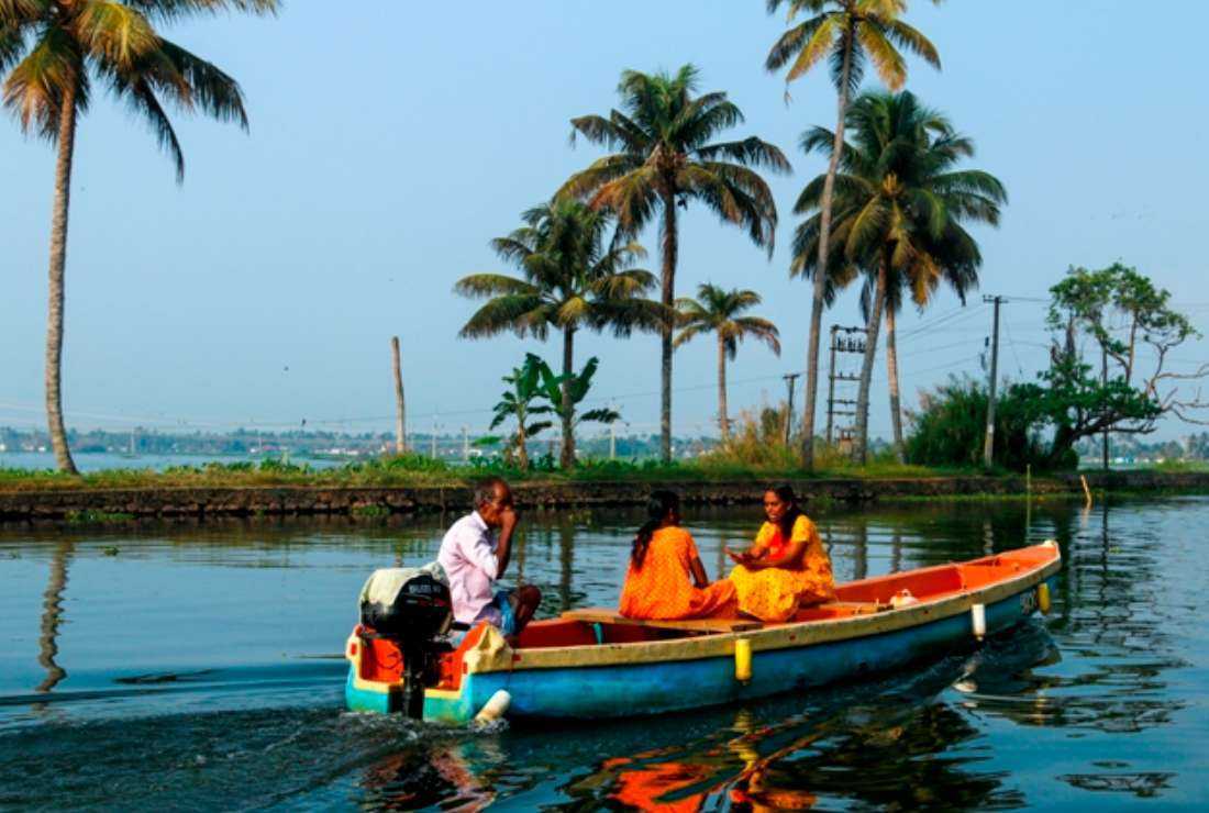 In this picture taken on March 21, 2022, women travel by boat on the backwaters of Alappuzha, Kerala. (Photo: AFP)
