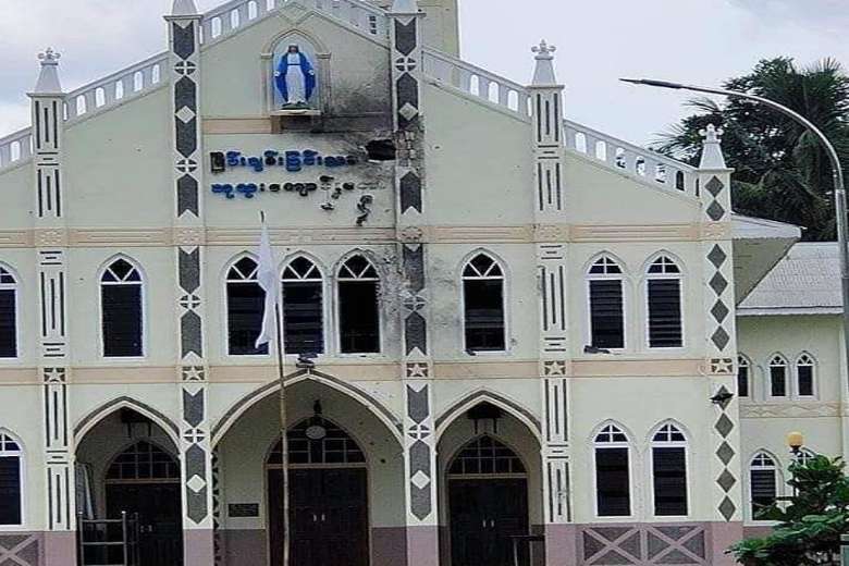 Our Lady, Queen of Peace Church in Doungankha village of Demoso township was hit by artillery fire on June 6 morning but there were no casualties, according to church officials.