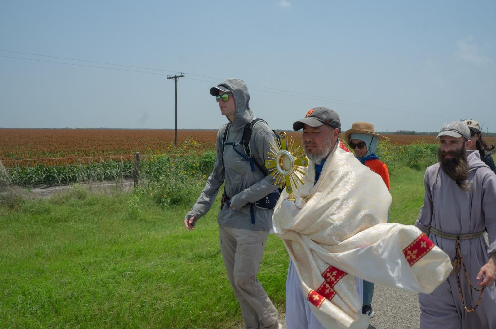 Marching under a brutal south Texas sun, Charlie McCullough stopped this week to briefly talk to a young bystander as the southern route of the National Eucharistic Pilgrimage passed through Victoria. The twentysomething man, who grew up Protestant and in the foster care system, had lots of questions for McCullough about what this large group of Catholics was doing, and why.