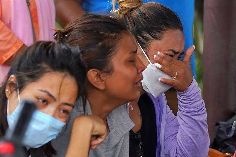 Family members and relatives of passengers on board the Twin Otter aircraft operated by Tara Air weep outside the airport in Pokhara on May 29. (Photo: AFP)