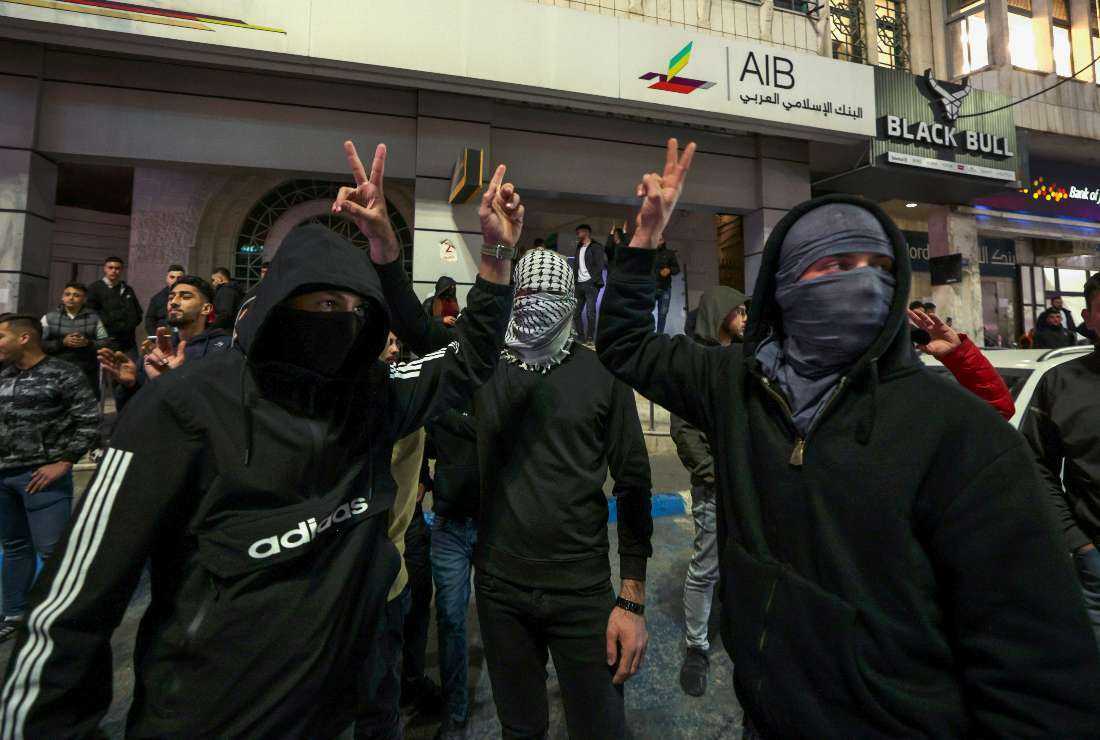 Masked Palestinian youths flag the victory sign after news of an attack in a settler neighborhood in Israeli-annexed east Jerusalem on Jan 27. (Photo: AFP)