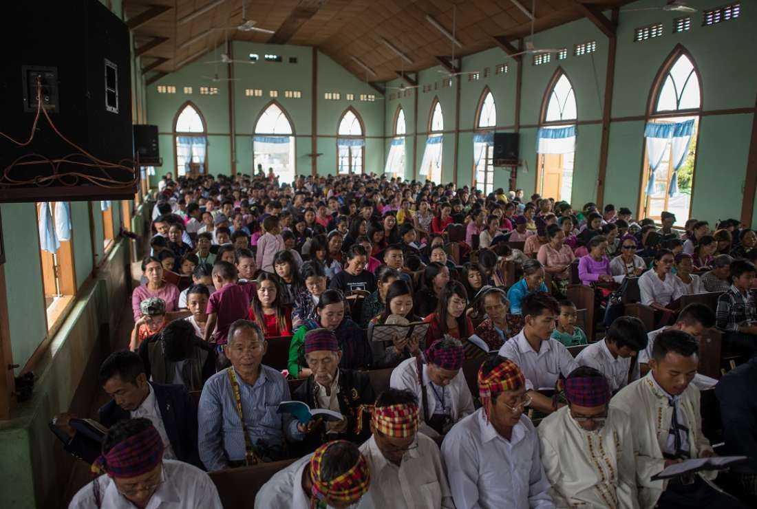In this picture taken on May 13, 2018, internally displaced people and local villagers attend a church service in Myitkyina, Kachin state. (Photo: AFP)