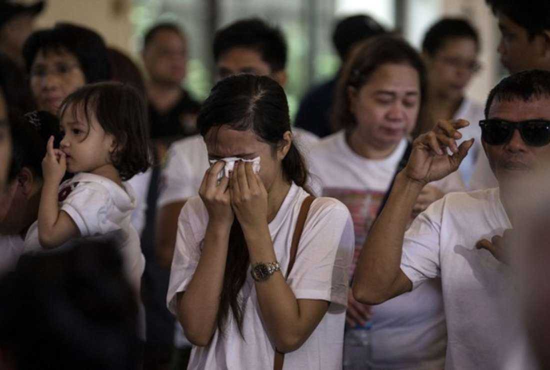 The sister of teenager Carl Arnaiz, who was shot and killed after he allegedly robbed a taxi driver at gunpoint, weeps during a Mass ahead of his burial at the Mater Dolorosa Parish in Manila in 2017. (Photo: AFP)