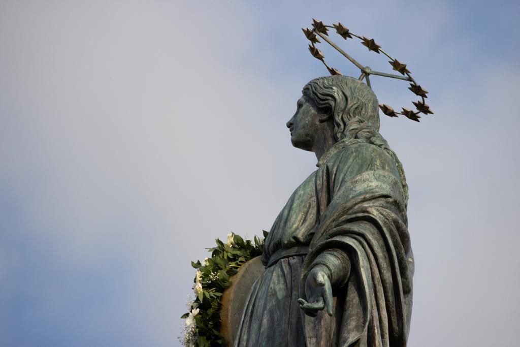 The statue of the Immaculate Conception sits atop a nearly 40-foot-high column.