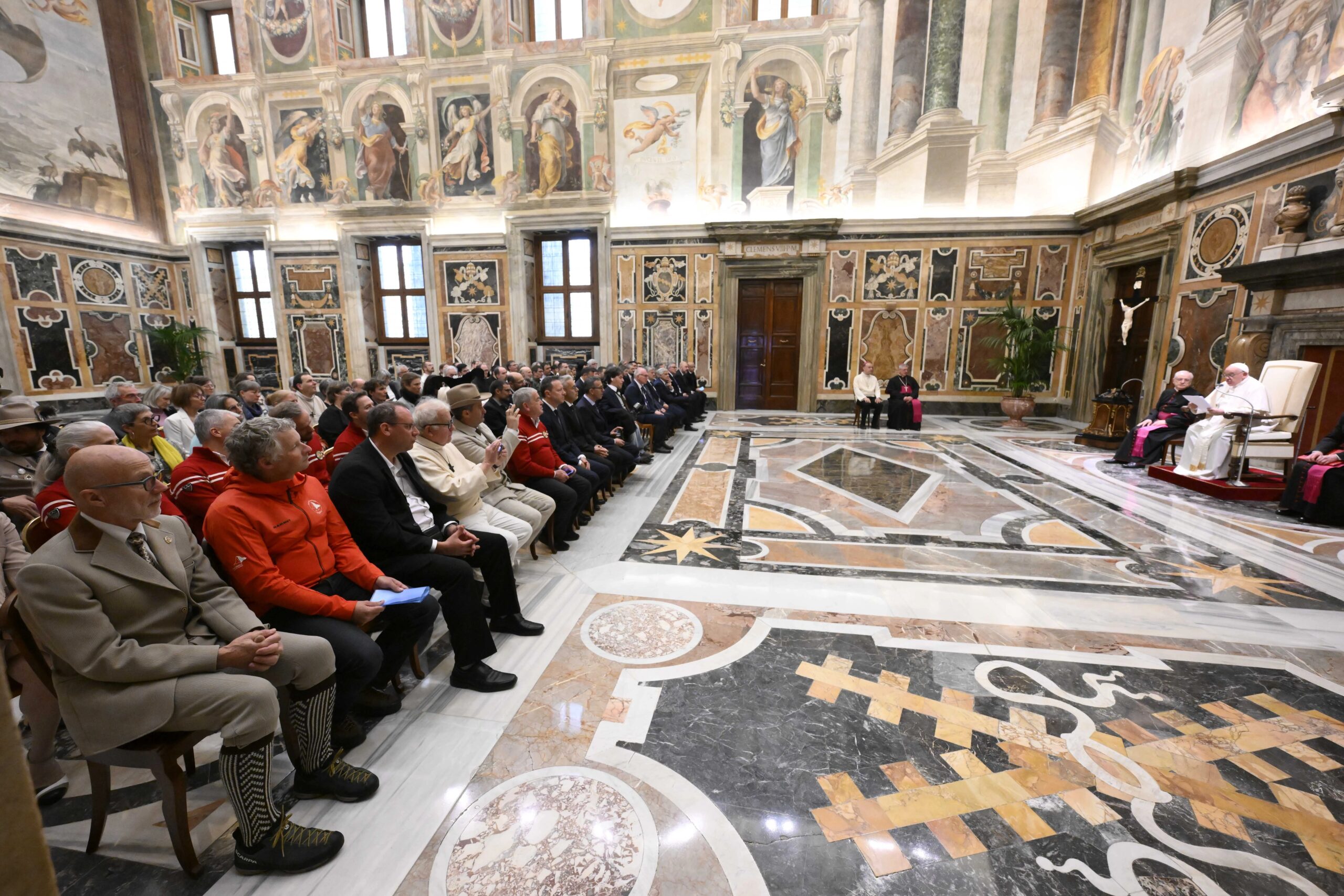 Noting that some of the consecrated canons regular are ski instructors and guides in the Alps, the pope drew on the symbolism of a mountain climber’s tools — the pickaxe and the rope — in his speech.