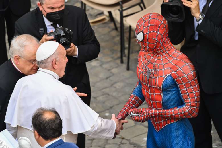 He shook hands with the pope — who a few years ago was famously depicted as Superman by an Italian street artist — and gave him a Spider-Man mask as a present on June 23.