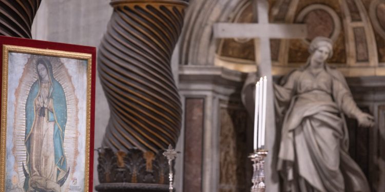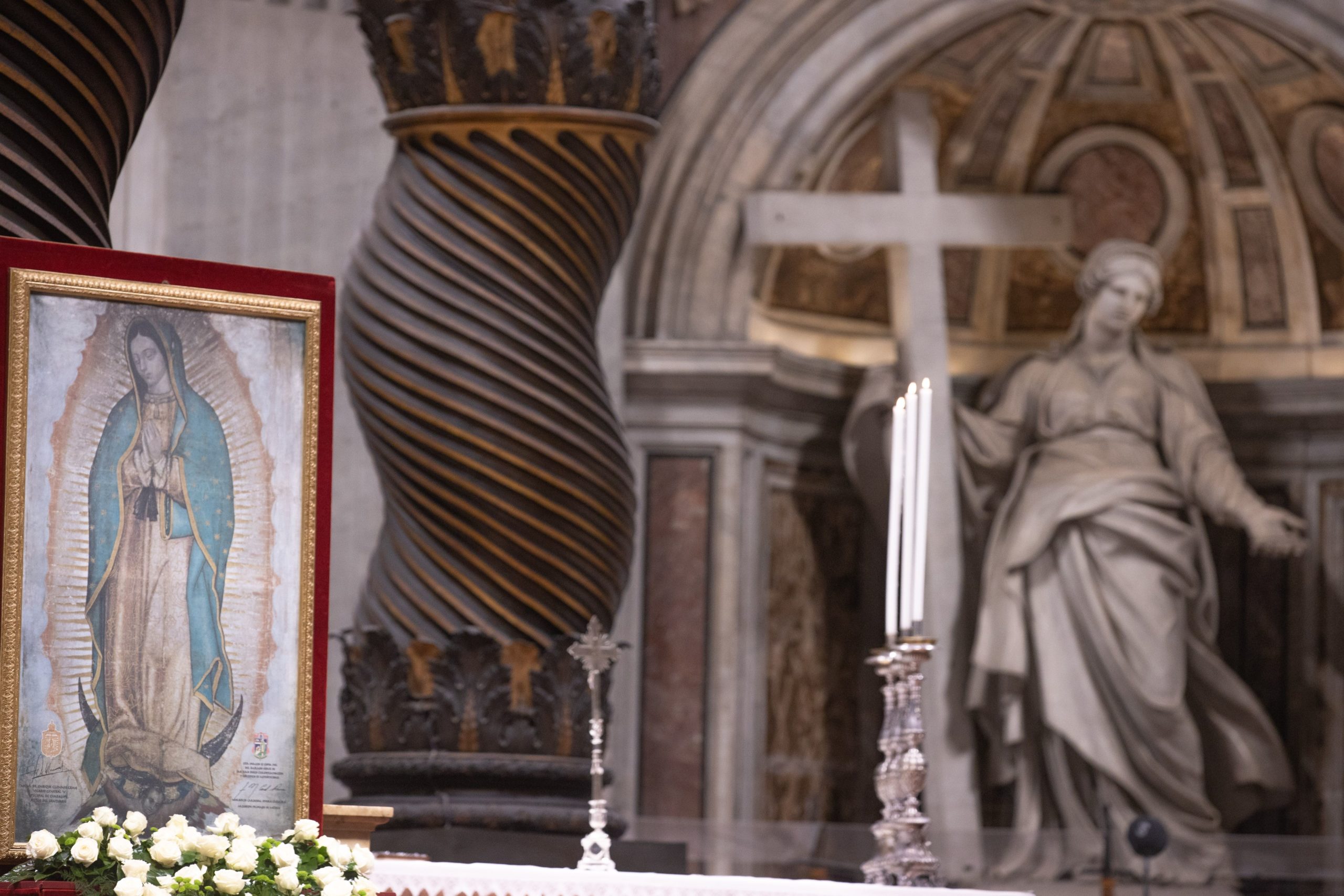 “Thus,” Pope Francis said, “Our Lady of Guadalupe came to the blessed lands of America, presenting herself as the ‘Mother of the true God for whom we live’; and she came to console, to attend to the needs of the little ones, without excluding anyone, to embrace them as a caring mother with her presence, love, and consolation.”