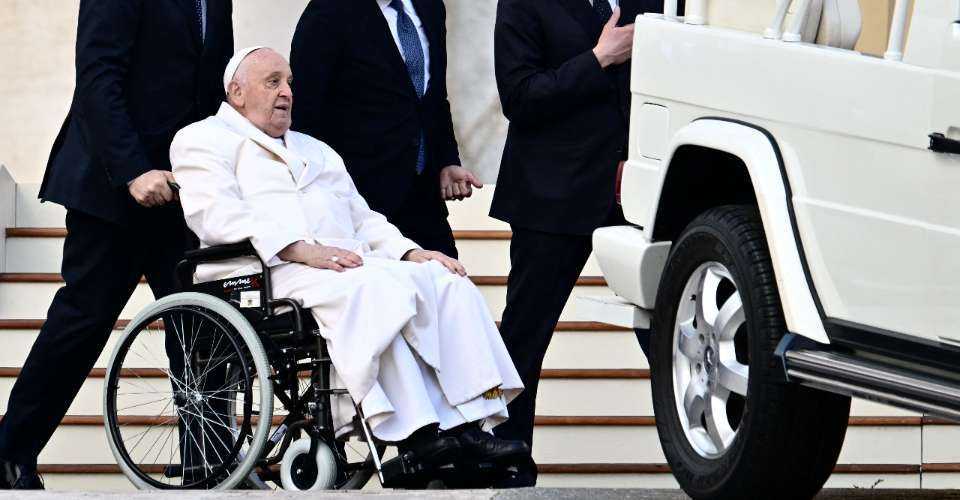 Still recovering from illness, Pope Francis told visitors an aide would read his talk because he could not read well due to a cold. The pope entered St. Peter’s Square in the popemobile and wearing a coat in the brisk weather, but he struggled to lift himself into the vehicle after the audience and instead left the square using a wheelchair.