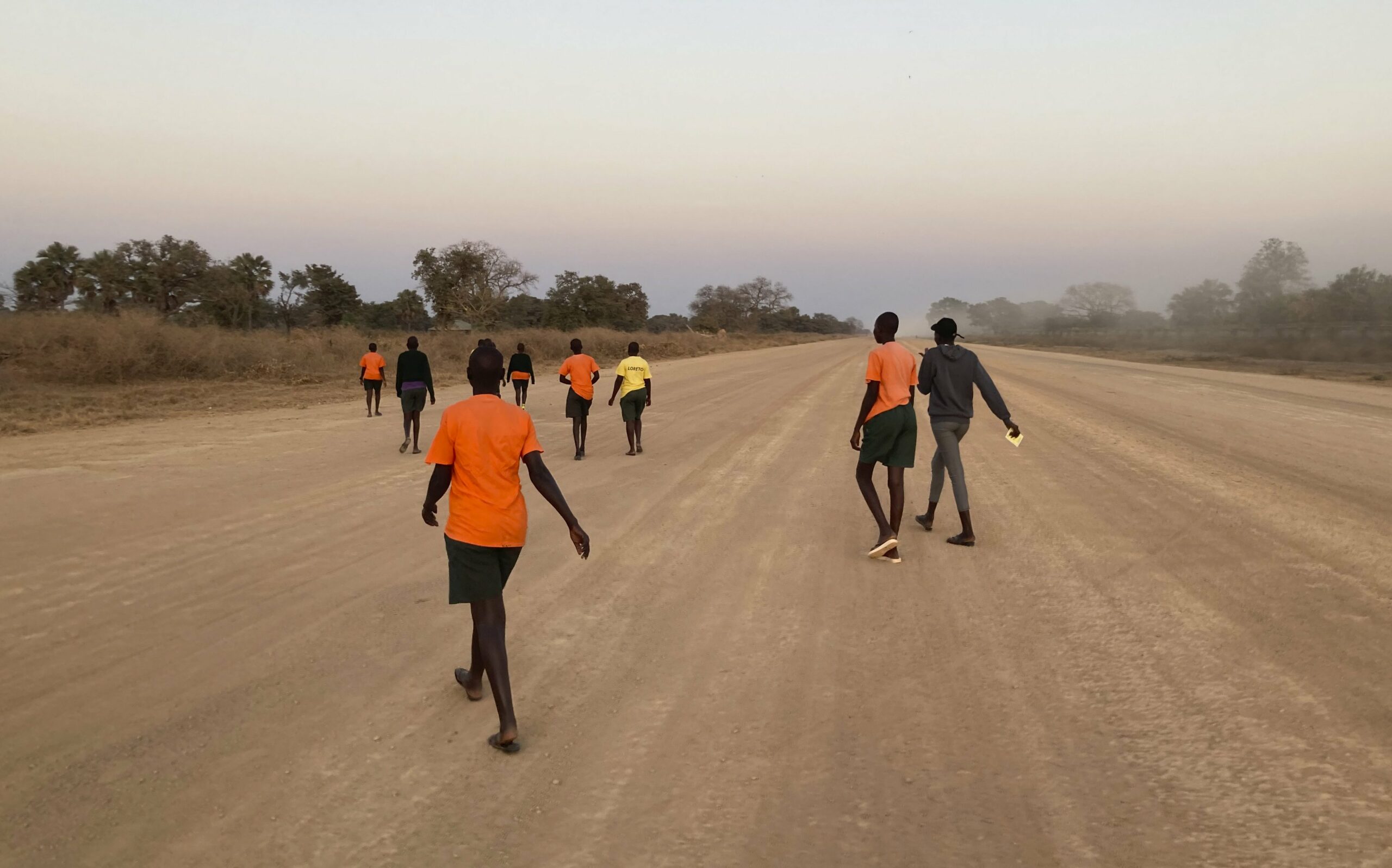 Students and interns from Loreto Secondary School participated in a training walk in Rumbek, South Sudan, Jan. 14, 2023, as they prepared to join others from the Diocese of Rumbek on a nine-day pilgrimage, walking to Juba for the Feb. 3-5 visit of Pope Francis. (CNS Photo courtesy of Sister Orla Treacy)