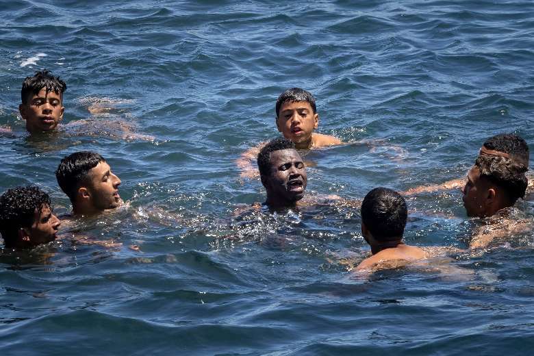 Spanish media reported that border guards in Morocco “stood by and watched” as migrants made their way to the sea attempting to cross over to Ceuta.