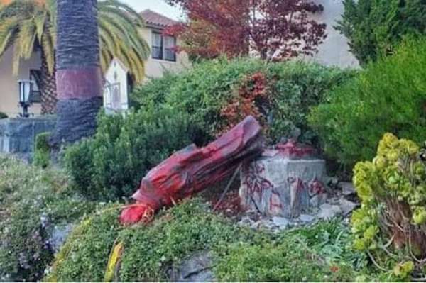 A statue of the saint was torn down in Golden Gate Park, San Francisco, on June 19 by a crowd of about 100 people, and on the same day a statue of the saint was torn down in Los Angeles.