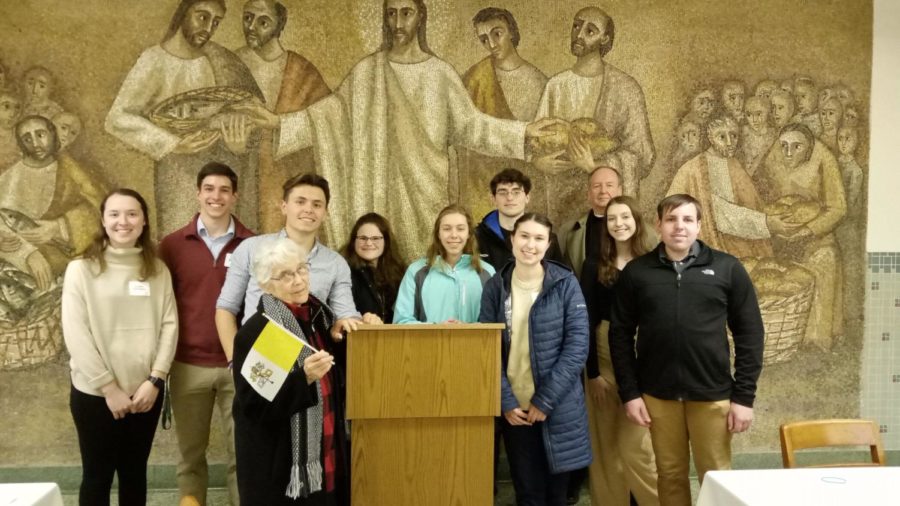 Mercyhurst students who are involved in Campus Ministry recently took a trip to St. Mark’s Catholic Center for a Dinner and Discussion with the bishop of the Diocese of Erie, Lawrence T. Persico.