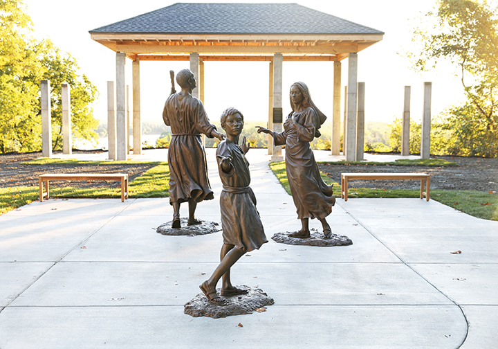 ATCHISON — The bronze sculpture “The Holy Family’s Return to Nazareth” was unveiled Sept. 27 at St. Benedict’s Abbey here. The sculpture, which is part of the new Return to Nazareth Prayer Garden, was created by St. Francis native Kate Marin.