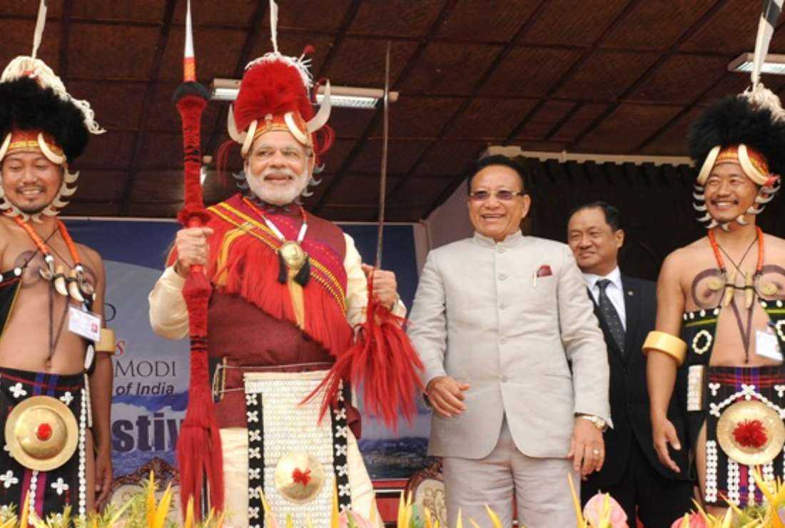 Indian Prime Minister Narendra Modi (second from left) at the Hornbill Festival in Kohima, capital of north-eastern state of Nagaland. (Photo: PIB / AFP)