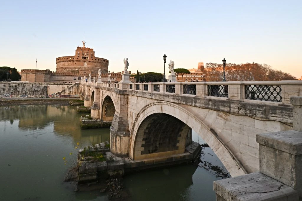 The “Alta Sartoria” show took place on the pedestrian-only Sant’Angelo Bridge, found directly in front of Castel Sant’Angelo, an ancient mausoleum later used as a papal fortress. The monument is connected to the Vatican by a 2,600-foot-long raised corridor. Part of the Dolce & Gabbana show took place with St. Peter’s Basilica in the distant background.